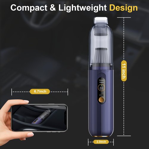 Cordless Handheld Vacuum Cleaner, 12000Pa Portable Car Vacuum with 3 Gear Speed Display, 4 in 1 Small Vacuum/Air Duster/Mini Blower/Hand Pump, Cordless Vacuum Cleaner for Car Keyboard Desk Home