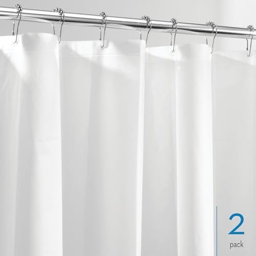 iDesign PEVA Mold and Mildew Resistant Plastic Shower Curtain Liner for Use Alone or With Fabric Curtain, Set of 2, 72¡± x 72¡±, White