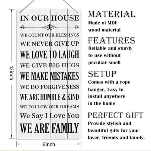 In Our House Sign, We Are Family Sign, Inspirational Wood Sign, Hanging Printed Wooden Plaque Decor, Family Room Decorative, Home Decor for Front Door, Porch Decorative, Living Room Decoration, Housewarming Decoration