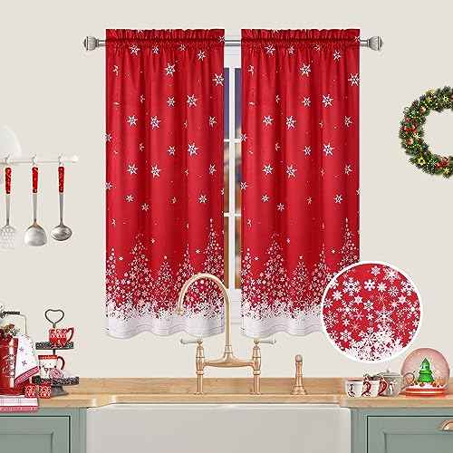 ROYGROW Christmas Kitchen Curtain 45 Inch Tier Curtains Window Treatment Rod Pocket for Home Decor 2 Panels for Bathroom, Living Room Christmas Decoration