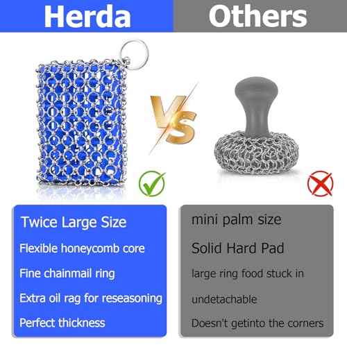 Cast Iron Scrubber with Bamboo Fiber Cloth and Pan Scraper, 316L Cast Iron Cleaner Set ? Removes Stains, Protects Coatings, Safe for Dutch Oven, Skillets, Griddles(Blue)