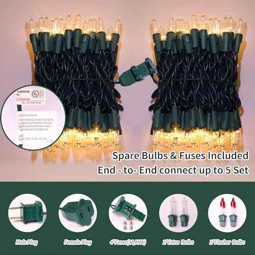 LAMPHOME Super-Bright Extendable Warm White Christmas Lights Decoration 100Lights 19.6ft UL Certified Mini Bulb String Lights Set for Outdoor Christmas Tree Garden Holiday Party Patio Wedding Decor