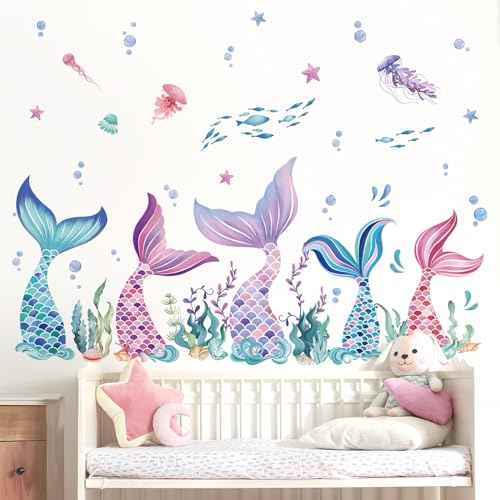 wondever Mermaid Tail Wall Stickers Under The Sea Mermaid Bubble Seaweed Peel and Stick Wall Art Decals for Baby Nursery Girls Bedroom Bathroom