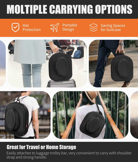 Livelab Hat Box for Travel - Crush Proof Cowboy Hat Holder Storage, Hard Travel Hat Carrier Case for Cowboy, Panama & Tweed Hats - Carrying Handle, Luggage Straps & Shoulder - Large