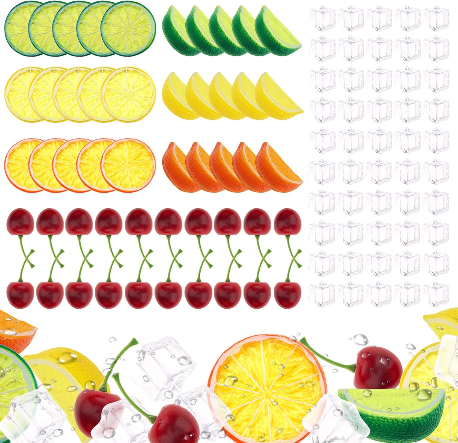 - Total 100 pcs top quality lemon slice cherry and ice in the package. Artificial fruit vegetable inner was made of eco-friendly process plastic.