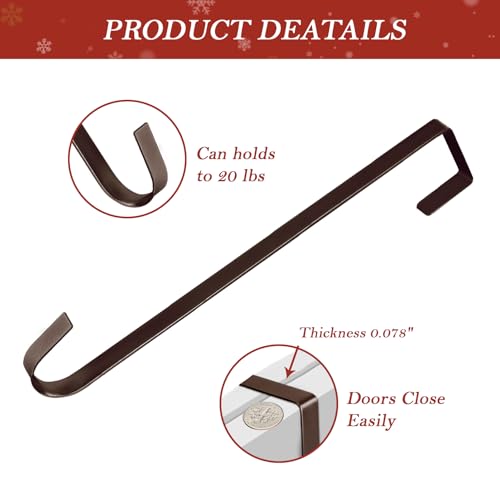 - Ultra-Thin Design - Closes Your Door Smoothly: This 12-inch door hanger hook for wreath, measuring 0.51 inches wide, and fitting doors up to 1.8 inches thick, this over the door wreath hanger is ultra-thin at just 0.078 inches. This metal wreath hanger allows your door to close smoothly. If your door and the door frame are very tight, it is not recommended