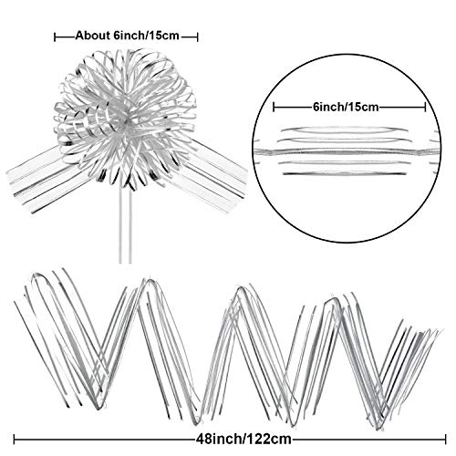 12 Pieces Large Pull Bow for Gift Wrapping Ribbon Pull Bows for Presents Wedding Baskets for Wrapping Boxes Flower Decorations(8 Inch,Silver)