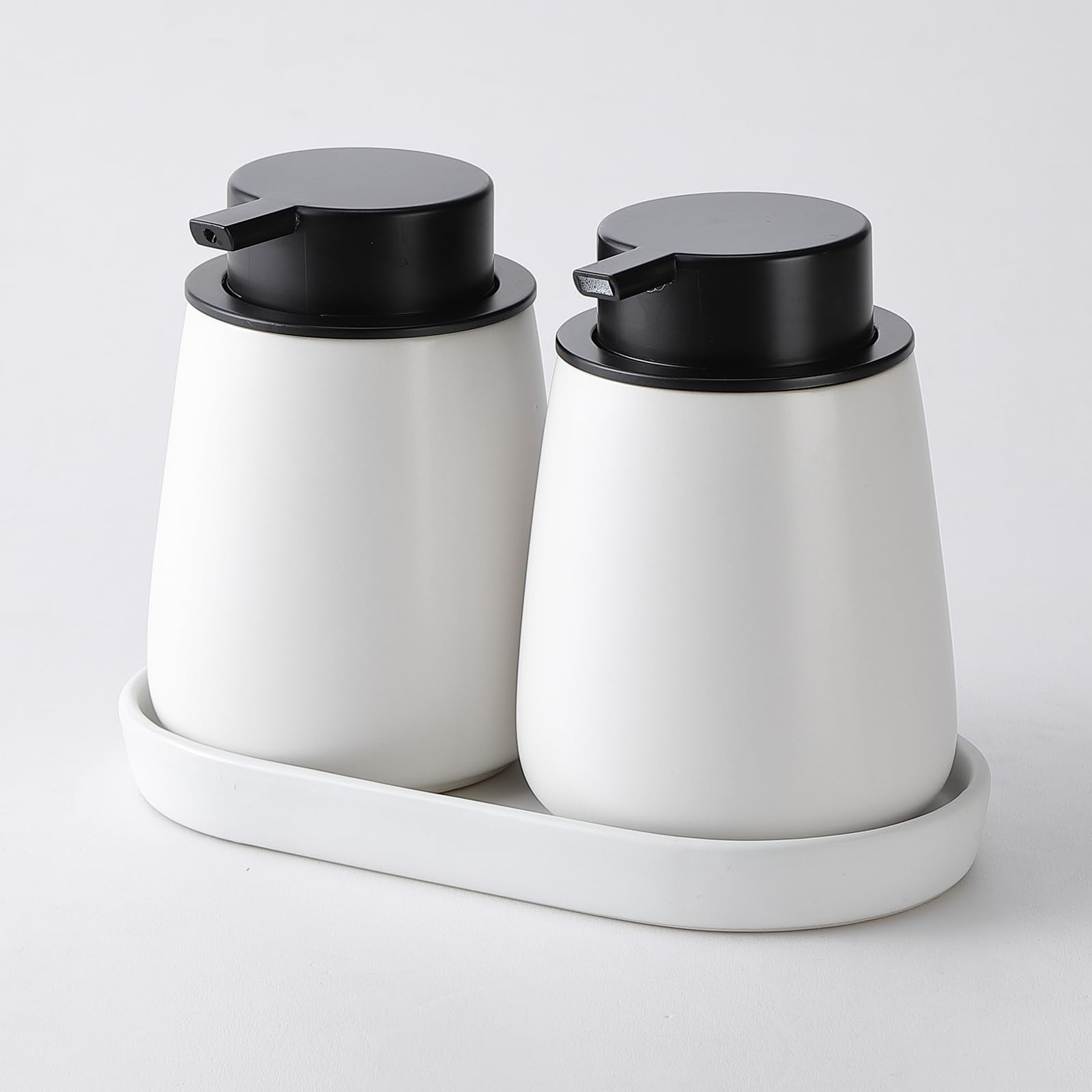 12Oz White Foam Soap Dispenser - Ceramic Foaming Hand Soap Dispenser Set with Easy-to-Press Pump, Refillable Liquid Dish Soap Dispenser for Bathroom and Kitchen, 2 Pack