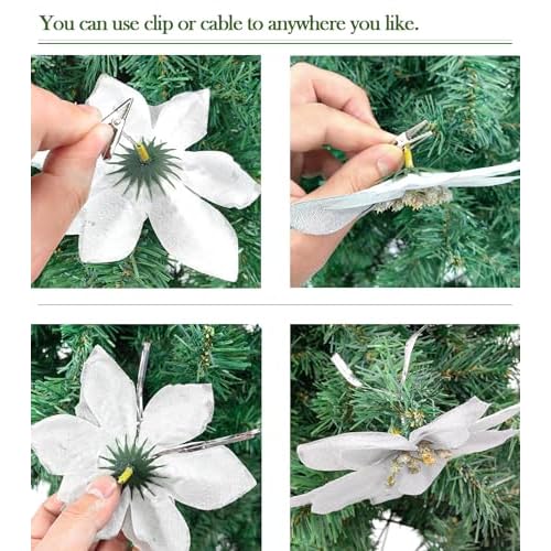 - Include 12 pieces flower, the flower size is approx 5"(13cm), perfect for filling in bare spots of your Christmas tree and make every Christmas tree for the holiday shines bright.