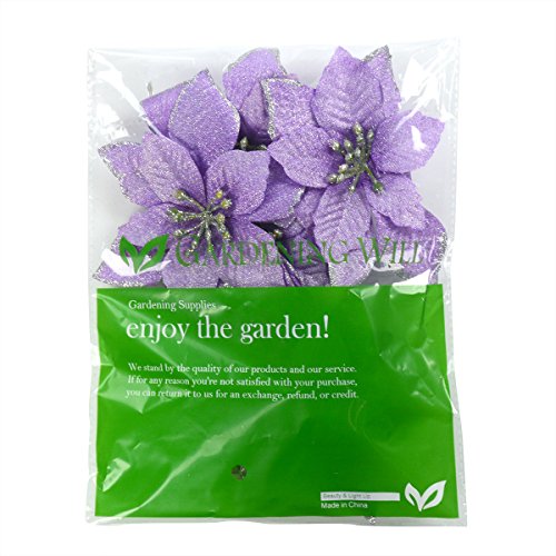 12Pcs 5 Inch Glitter Artificial Poinsettia Flowers with Ties for Wedding Christmas Festival Holiday Decor Xmas Wreath Garland Ornament Purple