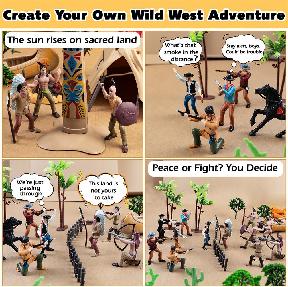- Wild west western cowboys or indians action figures toy playset, gift for Kids, party favors, sioux or pomo or pueblo or chumash indian figurines, bag stuffers, fun lifelike diorama toy, prize, children's school projects, indians cake toppers, a bit hit for family Christmas etc.