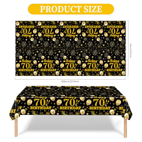 - ¡¼Fitting Size¡½: You will receive 2 black and gold disposable plastic tablecloths measuring 54 x 108 inches / 137 x 274 cm. Suitable for most different sizes of rectangular tables, providing flexibility for any 70th birthday party setup.