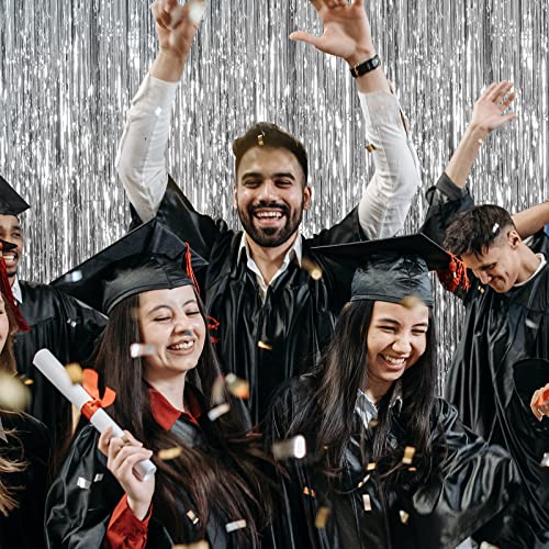2 Pack Foil Curtain Backdrop Silver Metallic Tinsel Foil Fringe Curtains Photo Booth Props for Birthday Wedding Engagement Baby Shower Bachelorette Christmas Holiday Celebration Party Decorations