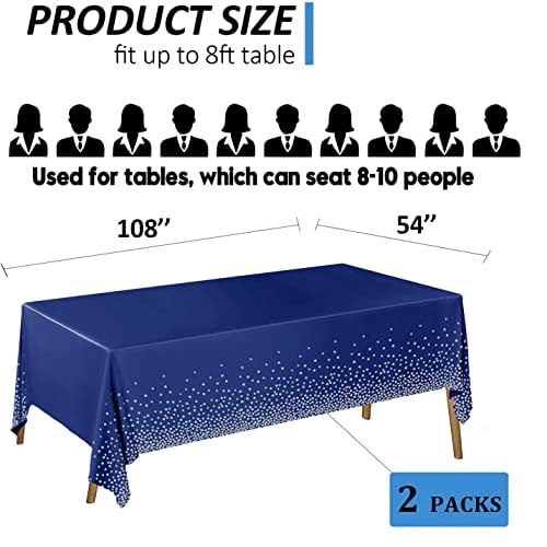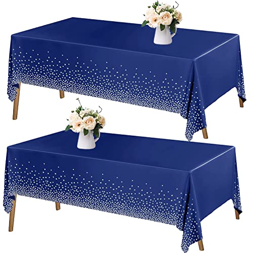 2 Pack Navy Blue Tablecloth Plastic, Table Cover for Parties, Dot Confetti Pattern Table Covers for Rectangle Tables, Fit for All Birthday Party, Wedding, Graduation, Anniversary, 54" x 108"