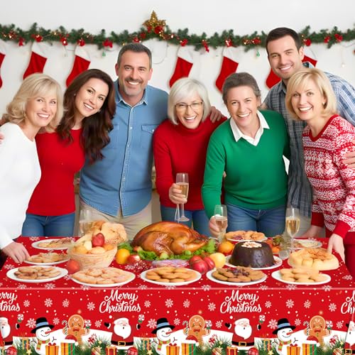 - ¡¼Classic Christmas Themed Design¡½- This red and white Christmas plastic tablecloth is painted with all kinds of classic patterns, such as Santa Claus, Snowman, Gingerbread, Snowflakes, Christmas caps, Christmas Gifts, etc, which makes this tablecloth eye-catching and adds an attractive scenery to your 2025 Christmas decorations or other themed party supplies during winter holiday.