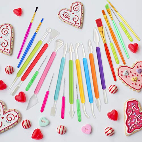 - Cookie decorating tools set: you will receive 21 pieces of cookie decorating tools in total, including 6 pieces of cake decoration brushes, 6 pieces of sugar stir needles and 9 pieces of cake decorating sculpting modeling tools, good combinations to carve your cakes and cookies