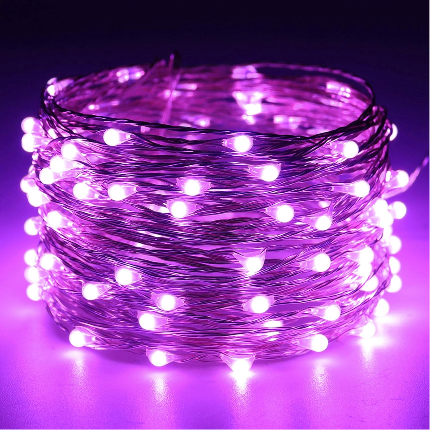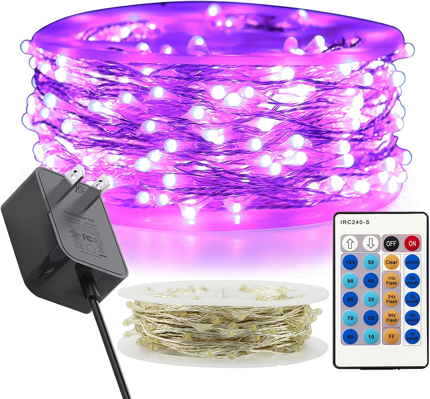 300 LED Dimmable Purple Fairy Lights - 99 Ft Waterproof Silver Wire String Lights with Remote for Christmas, Halloween, Party & Garden
