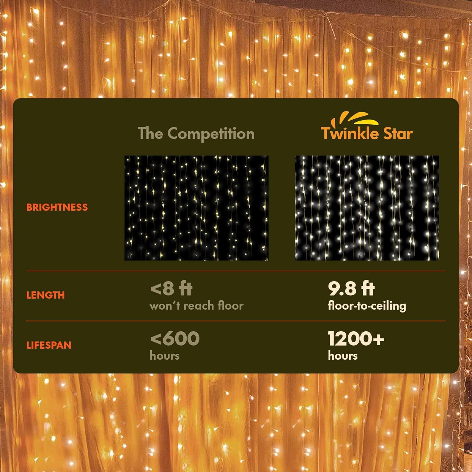 - This LED curtain lights will make your life lovely. NOTE: ONLY STRING LIGHTS, NOT COME WITH A CURTAIN, MAINLY USED FOR CURTAIN DECORATION.