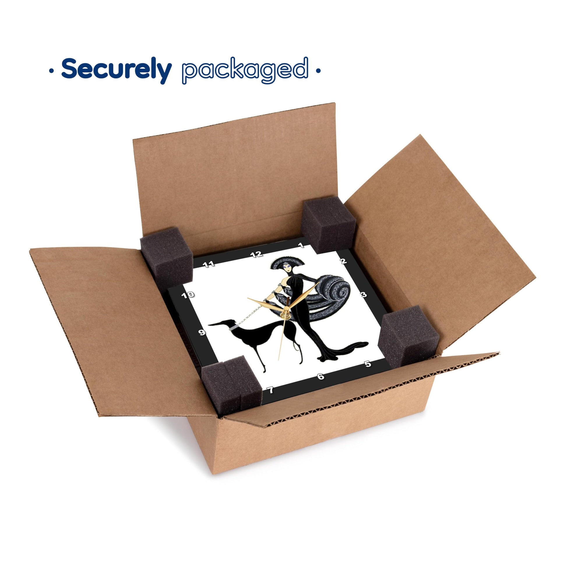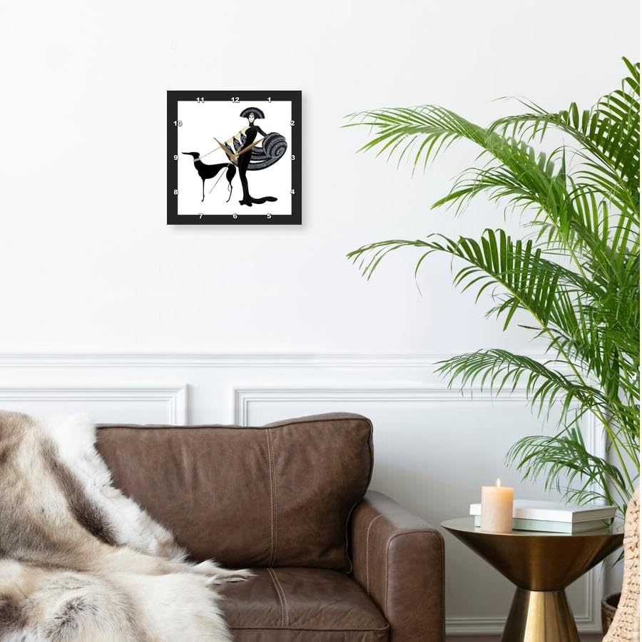 3dRose DPP_43794_3 Art Deco Lady with Dog Wall Clock, 15 by 15-Inch