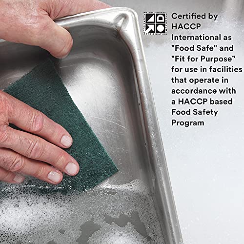 Scotch-Brite™ General Purpose Scouring Pad 96 is the original synthetic scouring pad, still a performance pacesetter. Non-rusting and resilient, the general purpose scouring pad replaces steel wool in residential and commercial kitchens. In side by side same product comparisons, Scotch-Brite™ General Purpose Scouring Pad 96 scours two to three times faster and is two to three times more durable than comparable medium-duty green scouring pads. Longer life, washability and reusability all lead to extended pad life and postponing disposal into landfills. Abrasive mineral particles are evenly distributed throughout the pad, ensuring consistent scouring performance as the scouring pad is rinsed and reused. Recommended for use on cookware, kitchen utensils and equipment, kitchen counters, floors, stairways, walls, railings, desks, counters and maintenance equipment. Scotch-Brite™ General Purpose Scouring Pad 96 is not recommended for use on polished or easily scratched surfaces.