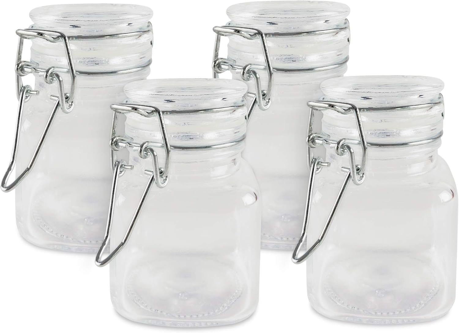 3oz Square Glass Jars with Hinge Lid - 4 Pack for Home, Crafts & Snacks