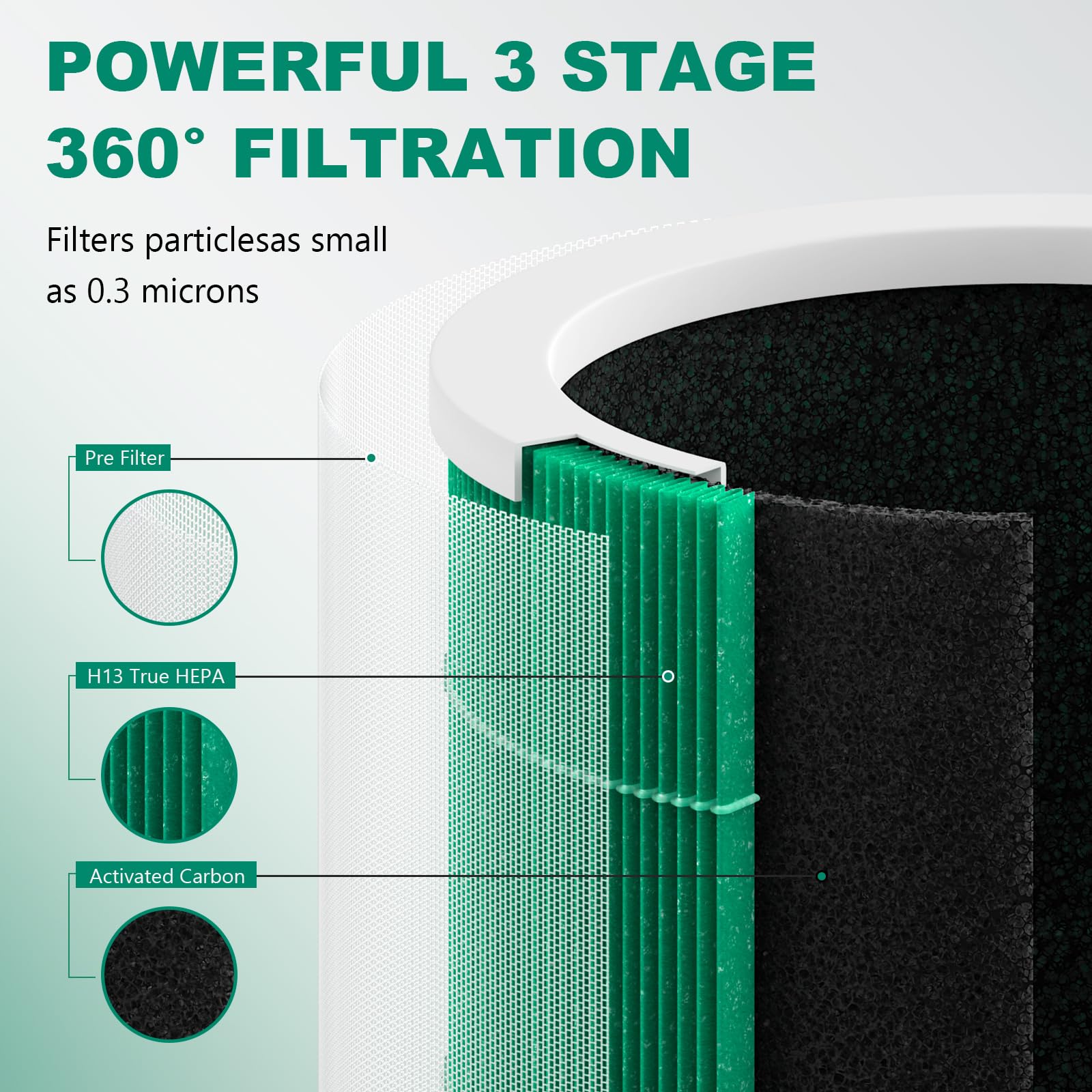 - 3-Stage Filtration System: Our replacement filter features a 3-in-1 filtration system that provides comprehensive air purification, providing you with a healthier living environment