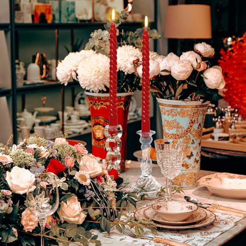 - ??Stunning Red Candles: The set of taper candles includes 4 red candle sticks which burns roughly 6-7 hours. Our tall candles feature a beautiful gradient red color that will add a pop of color to any space or event.
