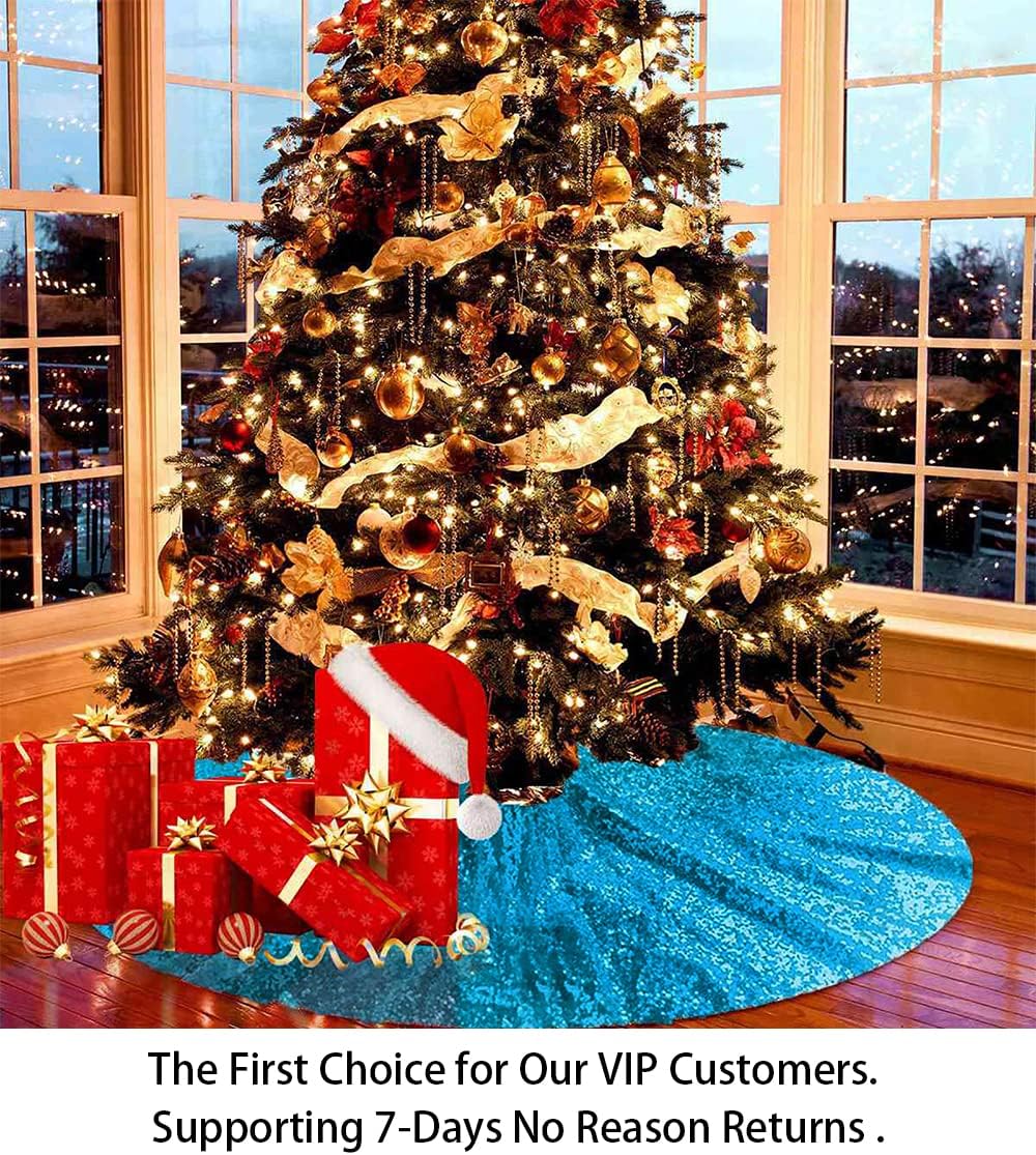 - ❤Sequin Tree Skirt: The santa tree skirt is made of high density sequin fabric, full dense sequins embroidered on mesh fabric, the spakle tree skirt reflects beautifully when light on.