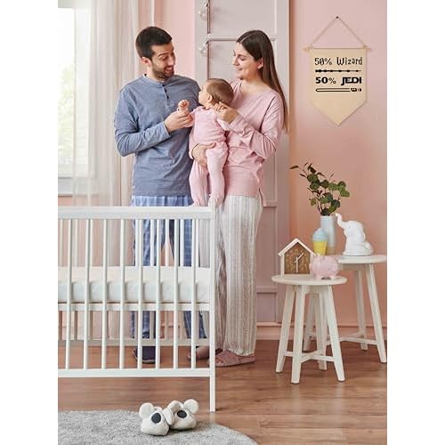 50% Wizard 50% Jedi-Canvas Hanging Flag Banner Wall Sign Decor Gift for Baby Kids Boy Nursery Teen Room Front Door -Star Quotes Wars Gift