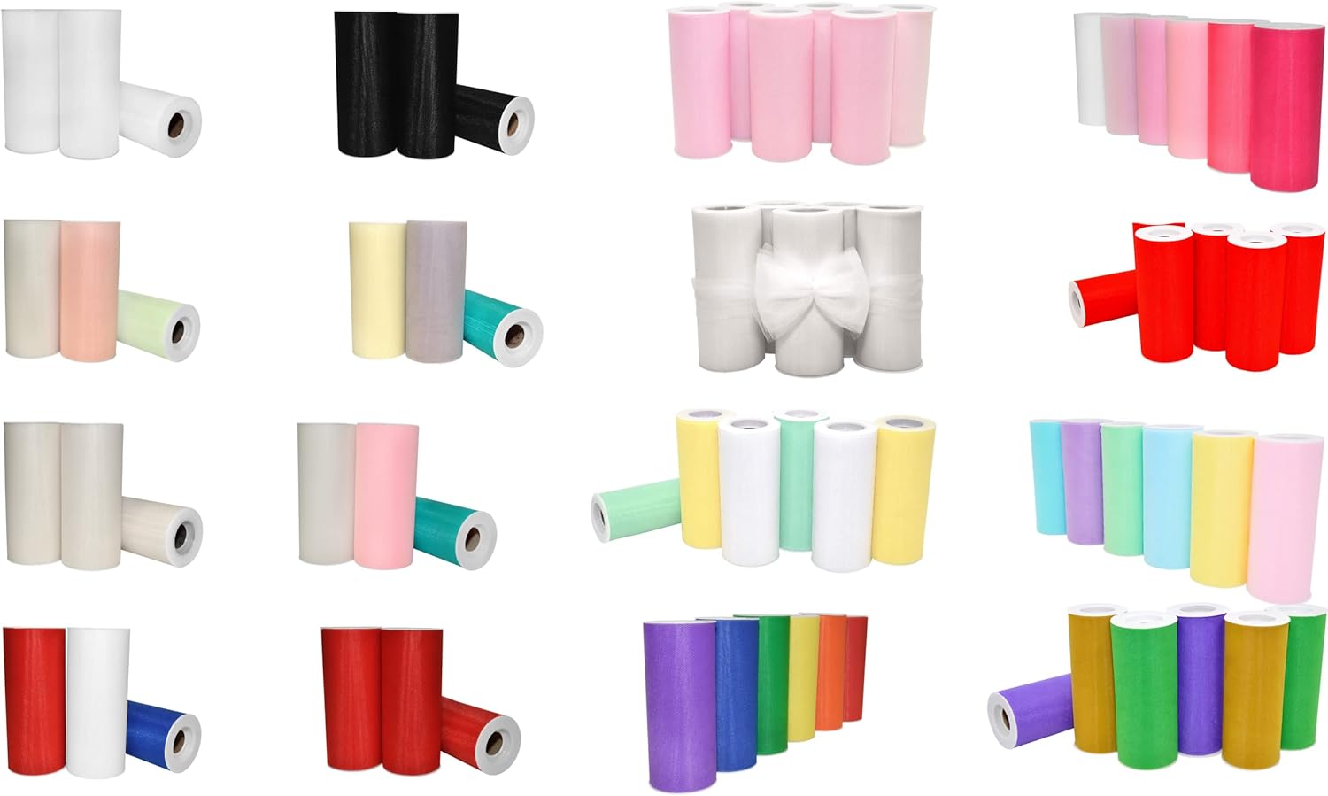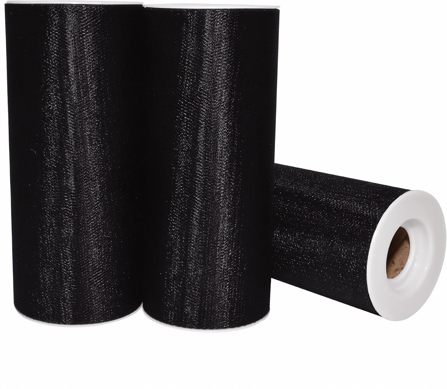 6" X 75 YD Black Nylon Tulle Ribbon - 3-Pack for Rainbow Tutu Skirts & Wedding Decor