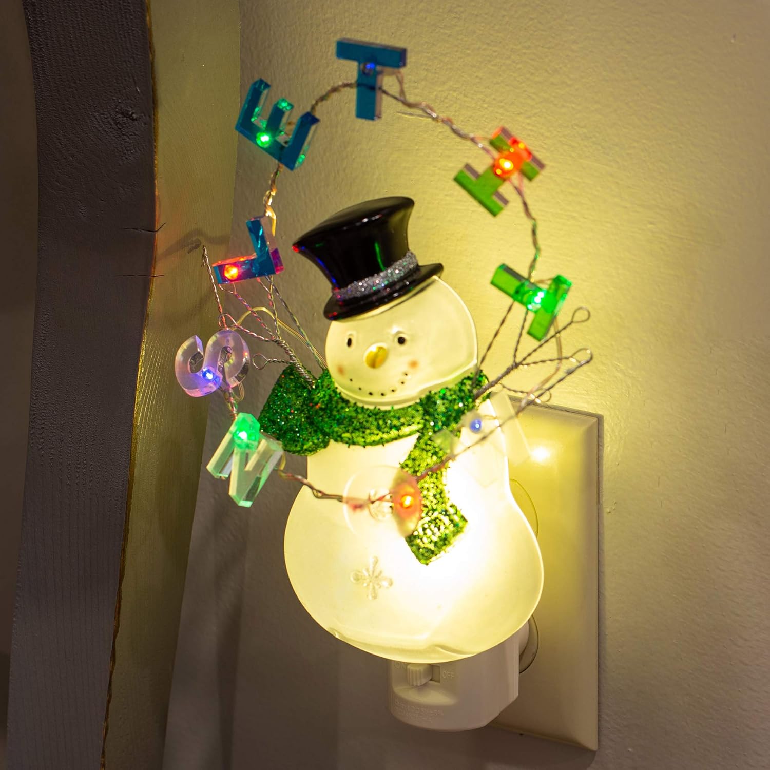 8-Inch Plug-in LED Snowman Christmas Night Light – Let It Snow Flicker Effect