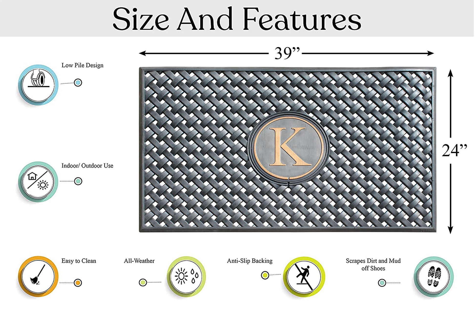 - A NEWLY DEVELOPED MONOGRAMMED RUBBER LONG LASTING DOORMAT: This doormat is specially created and designed in the USA keeping in mind most of the entry door mat needs for the first time in our country. Satisfaction is . The size is large enough to suit both double doors and also a single door.