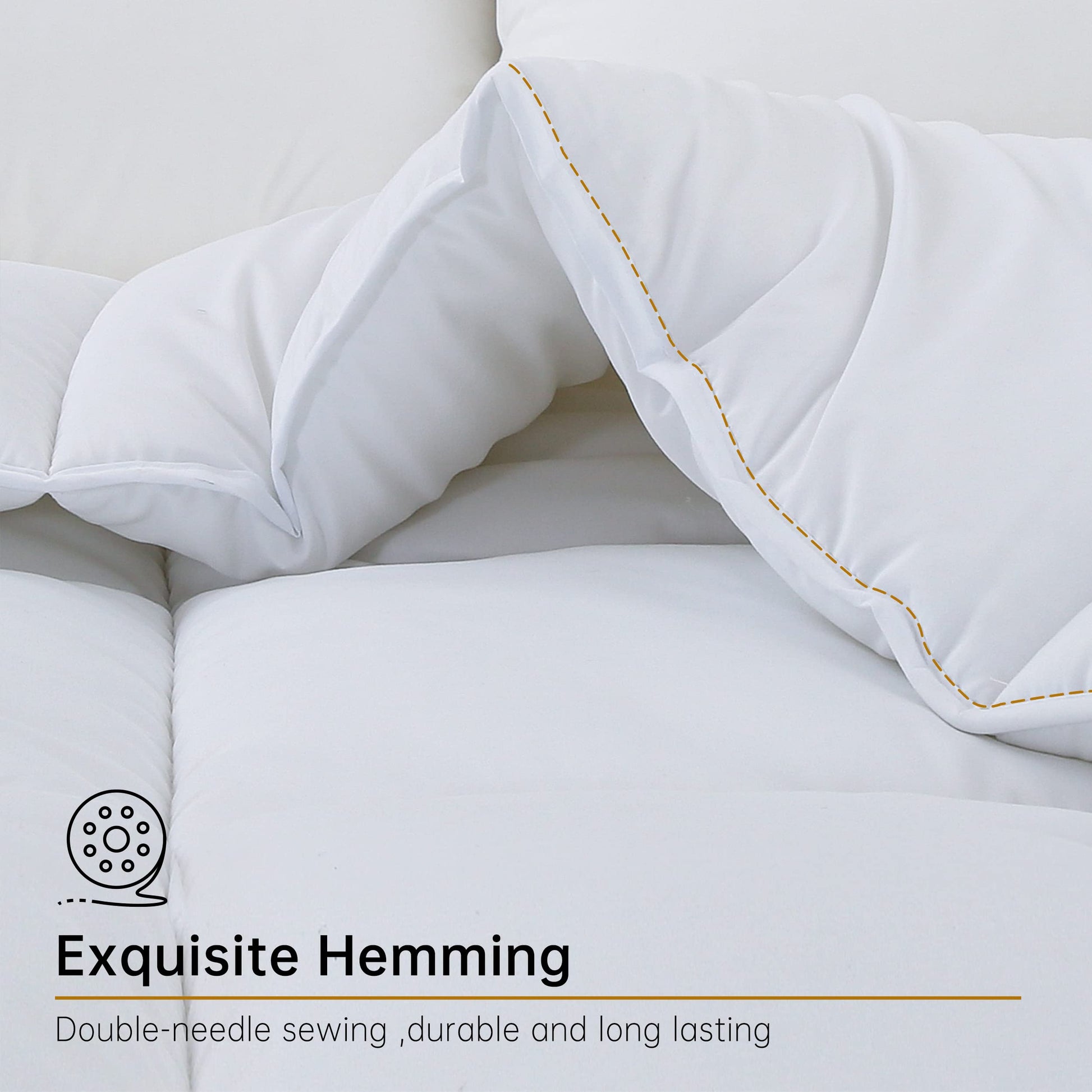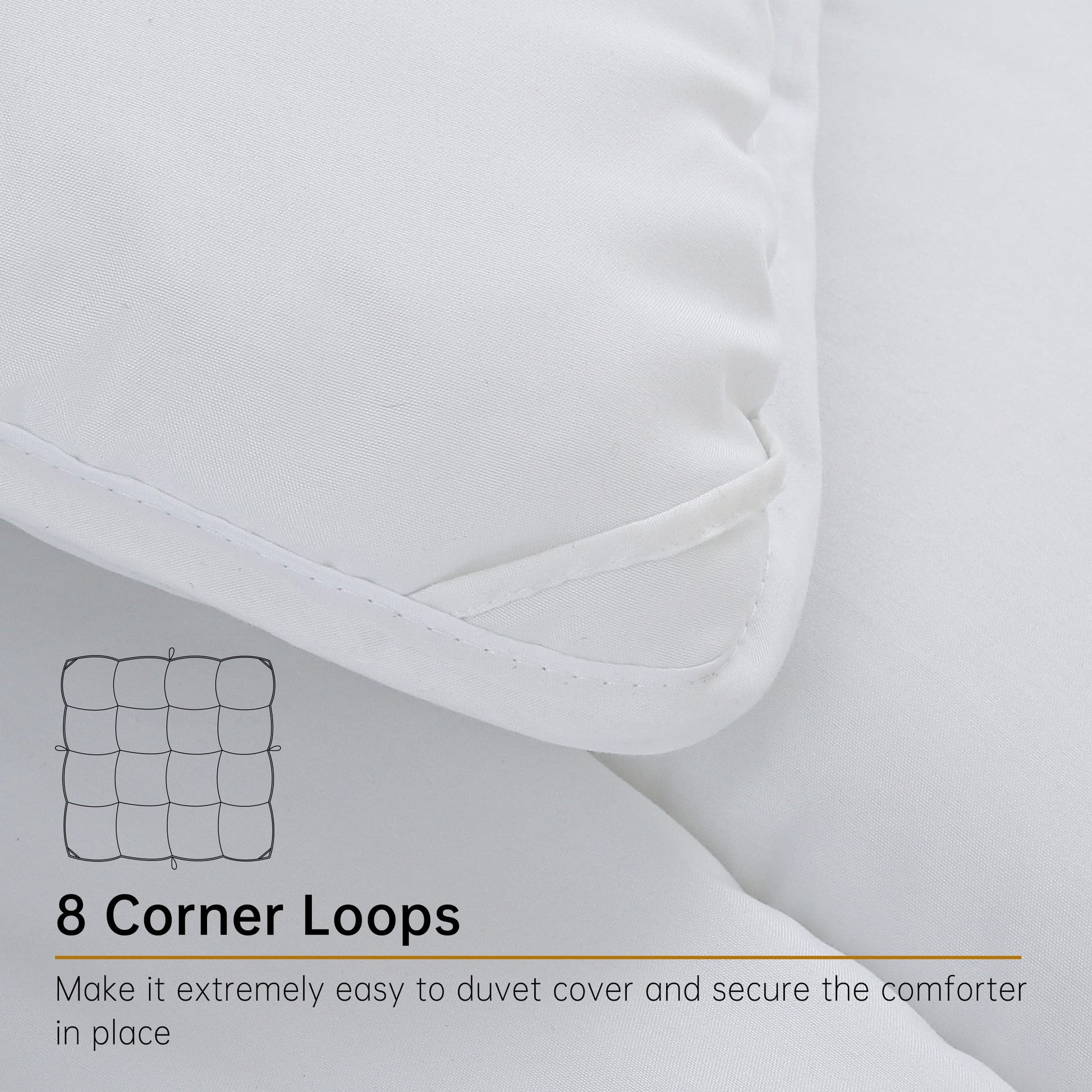 • 【8 Corner Tabs & Long Term Use】Featured with 8 corner tabs, it is easy to use ties to connect to the duvet cover. No shifting, slipping or sliding! For long term use, featured with tightly detailed single-needle stitching, our white comforter california king holds the filling secuely in place. No polyester filling leaking !