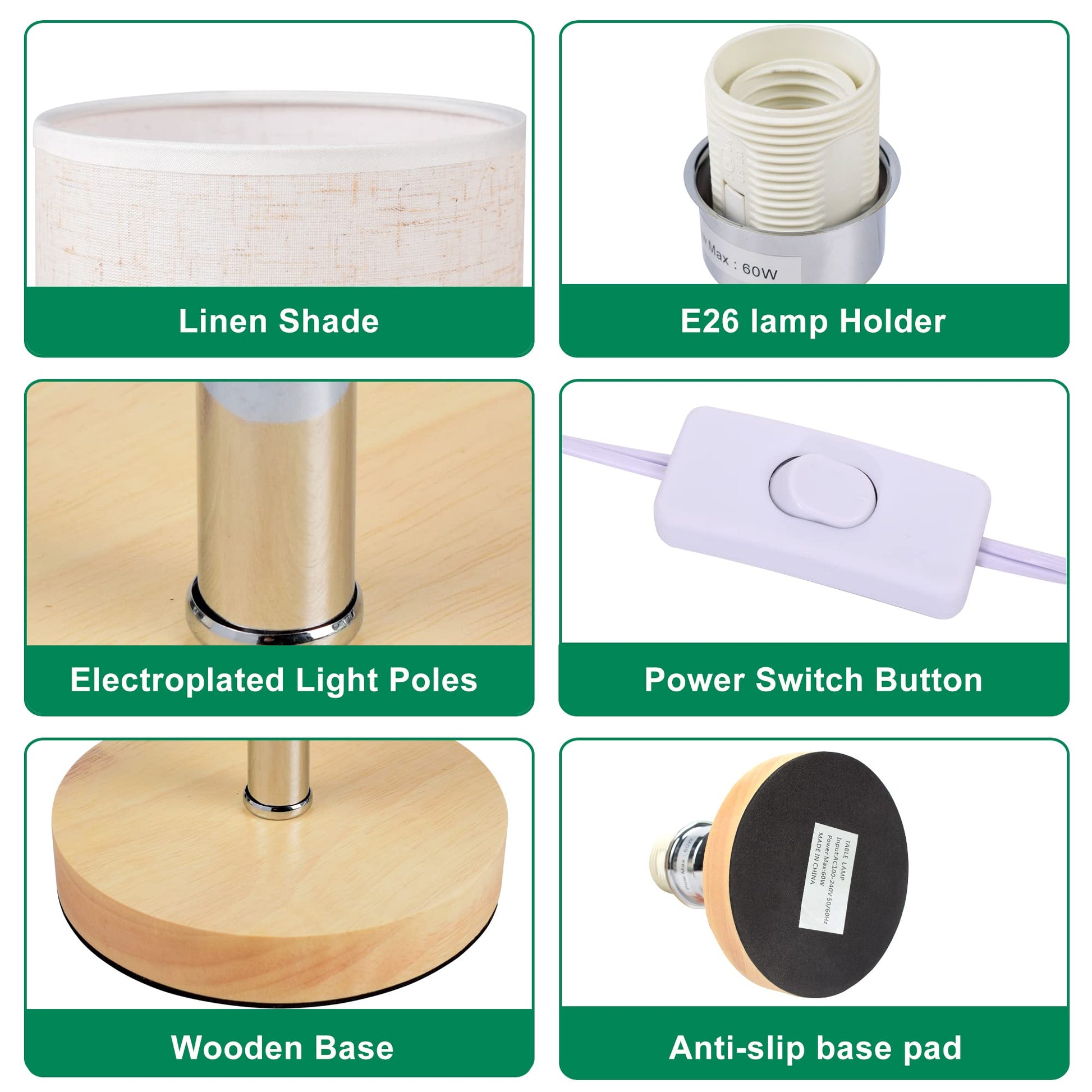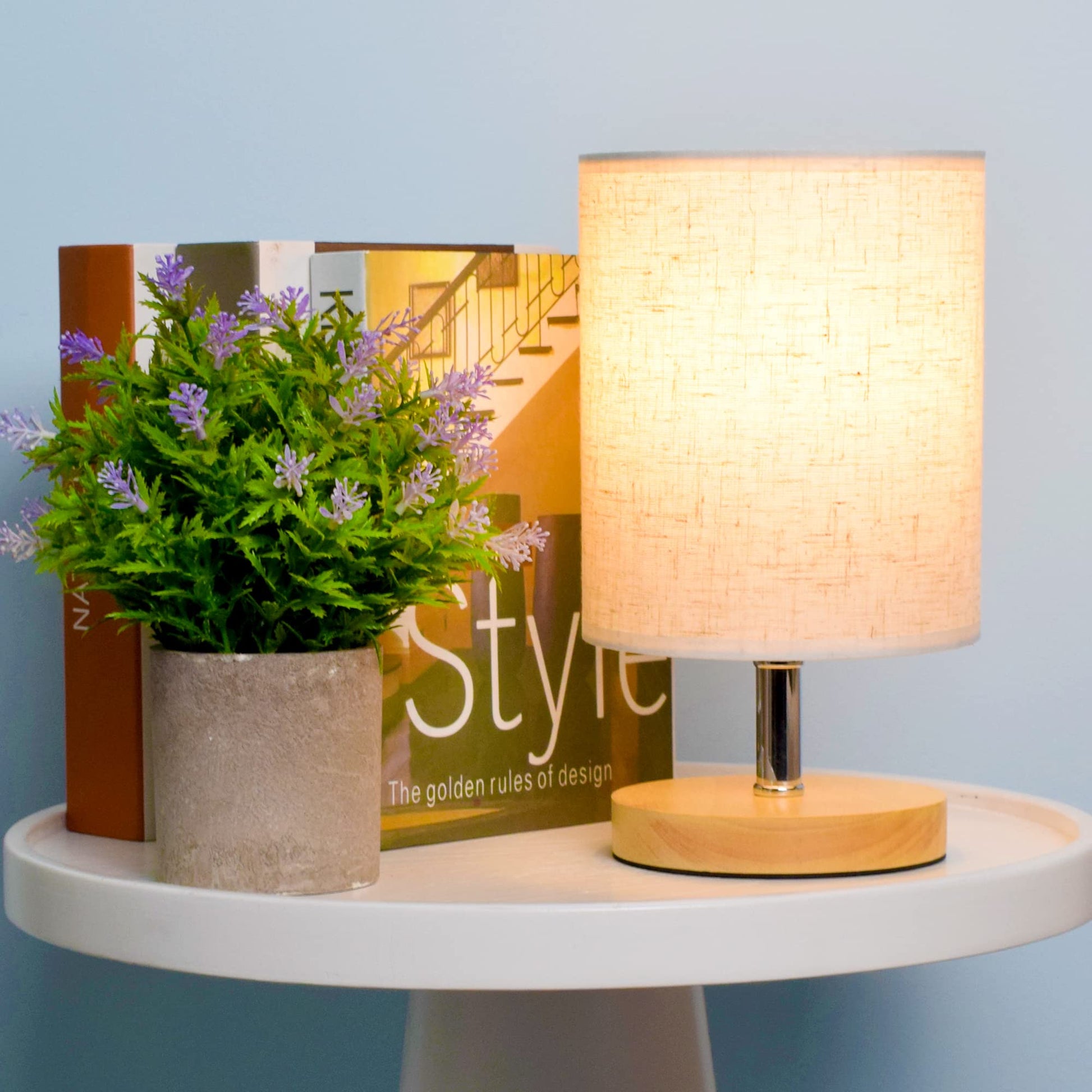 ACHUAI Small Table Lamp-Wooden Bedside Lamp Simple Bedroom Lamp Linen Shade Mini Desk Lamp Night Light Nightstand Lamp for Bedroom,Living Room,Kids Room (Including LED Bulbs) (Round-B)