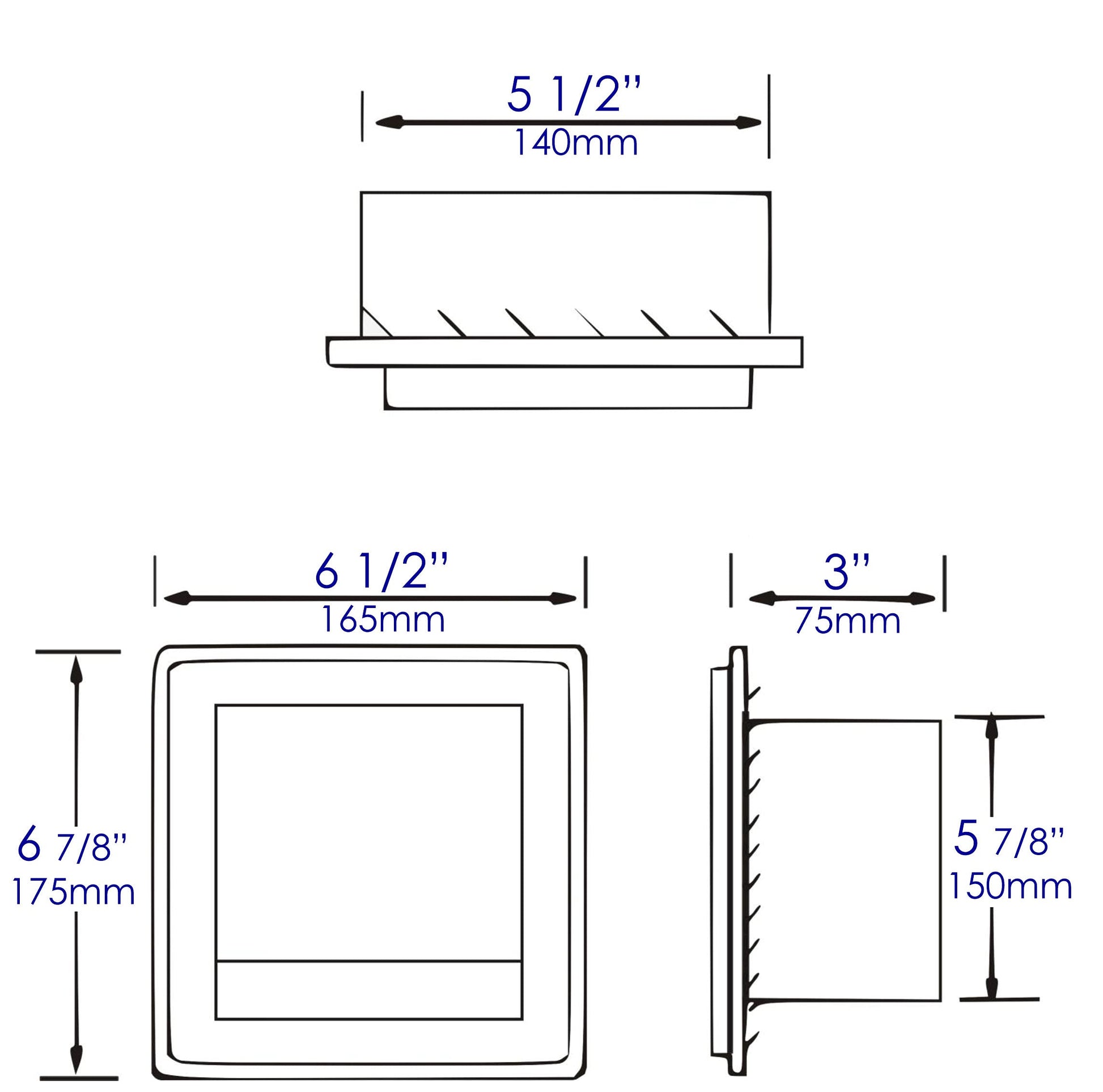 - Installs into the wall between the studs for a neat, recessed appearance. The wall cut out dimensions are 6" x 6"