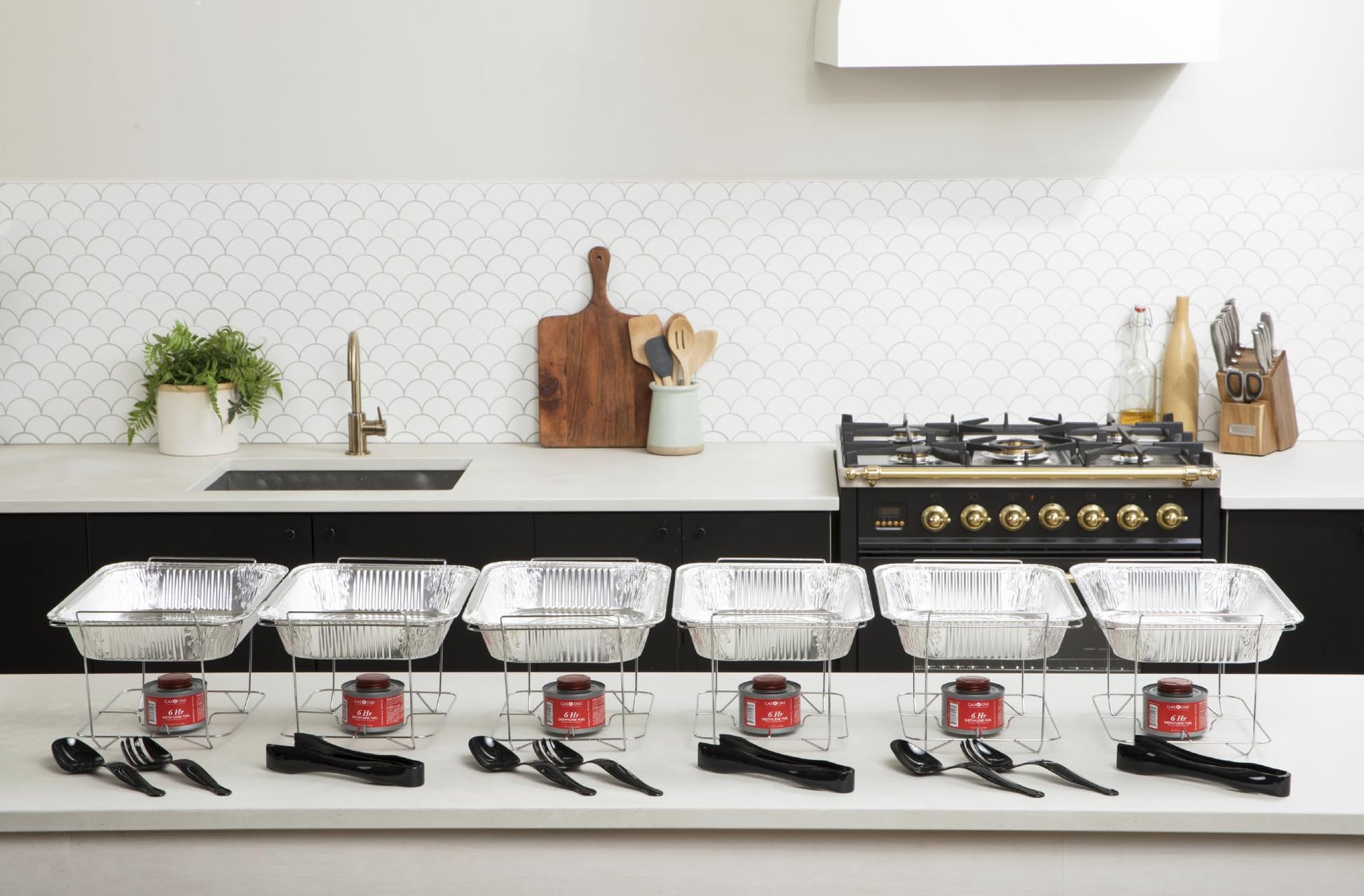 - Cater Like a Pro: Whether you are preparing for a big event or you want to impress your guests with a mouthwatering buffet, the Alpha Living disposable chafing dish buffet set has everything you need to display and keep the food at the perfect temperature, keeping it fresh and full of flavor!