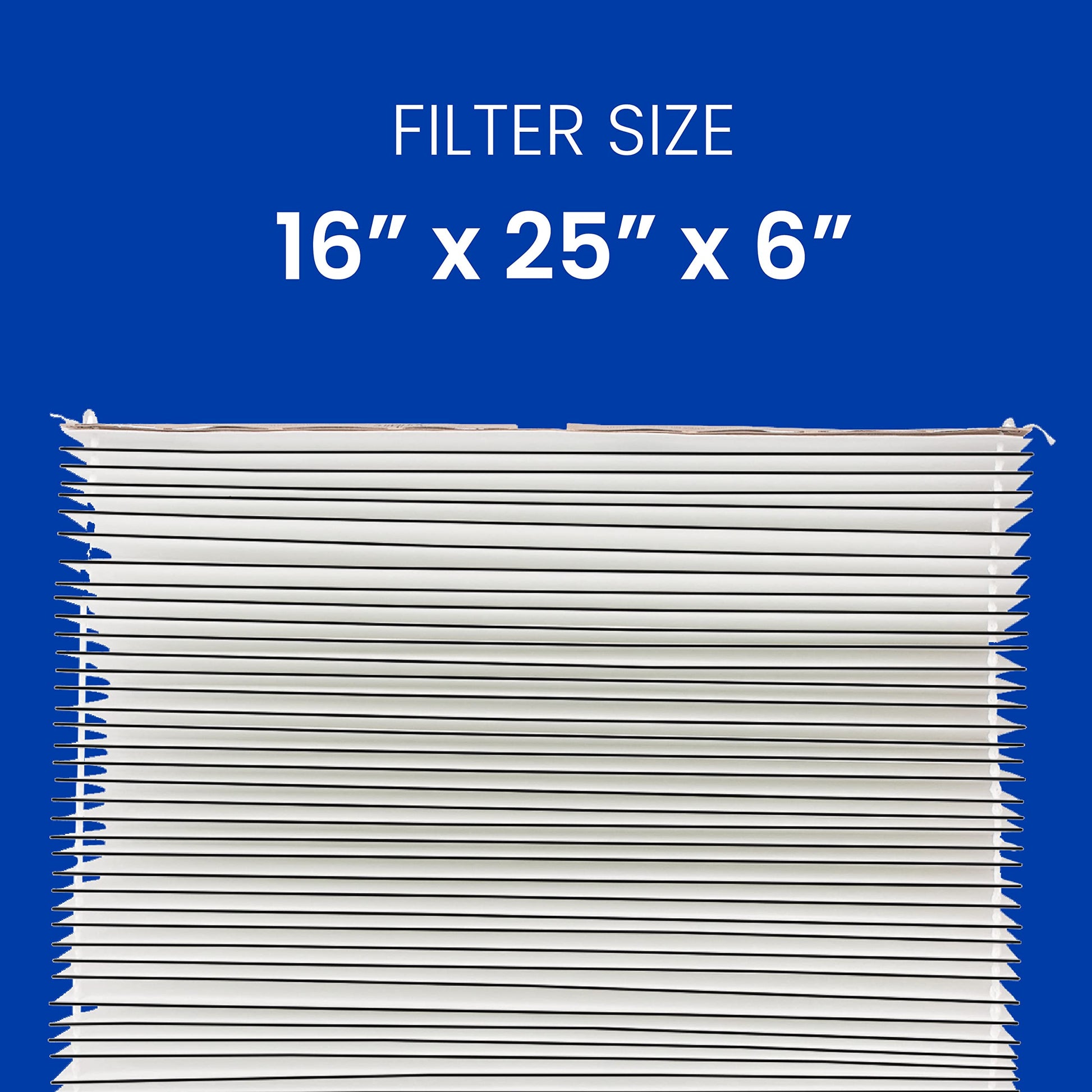 - NOMINAL AIR FILTER SIZE of 16 x 25 x 6 inches (nominal size is an industry standard filter size system to help you easily identify the correct replacement filter and is not the actual size)