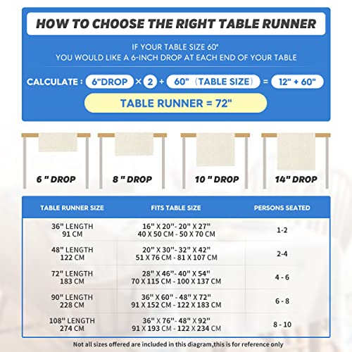 - Fits Table Size : This table runner is 13 x 72 inch, appropriate for a table that can seat 4-6 people, better match your table and give you a delightful dining experience
