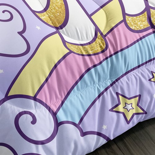 - 【Attractive Cartoon Printing】Purple rainbow unicorn Comforter Set,cute and full of children's interest. Bright and lively patterns bring joy to children and attract them to bed early