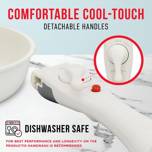 - EASY AND CONVENIENT: Cooking is made easier with the cool-touch detachable handles. Carefully engineered, they guarantee a burn-free grip. There is more! The crystal-clear tempered glass lids allow you to keep an eye on the food at all times. We also cared about making the pots easy to wash, to avoid any cleaning nightmare.