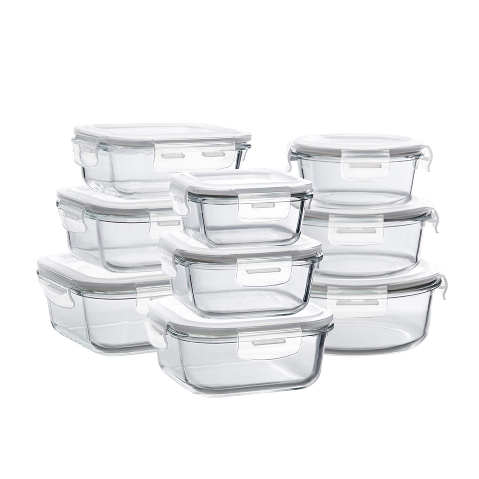 Bayco Glass Storage Containers with Lids, 9 Sets Glass Meal Prep Containers Airtight, Glass Food Storage Containers, Glass Containers for Food Storage with Lids - BPA-Free & Leak Proof