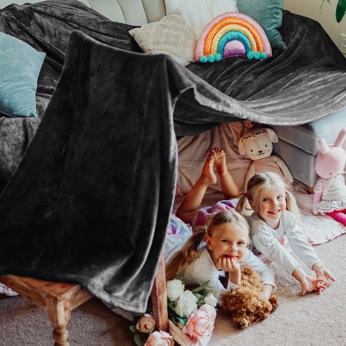 Bedsure Oversized King Big Blanket 120"x120" - Extra Soft Large Throw Blankets for Bed, Sofa, Couch, Travel, Camping, Warm Fleece Blanket for Party in Winter 10x10, Charcoal