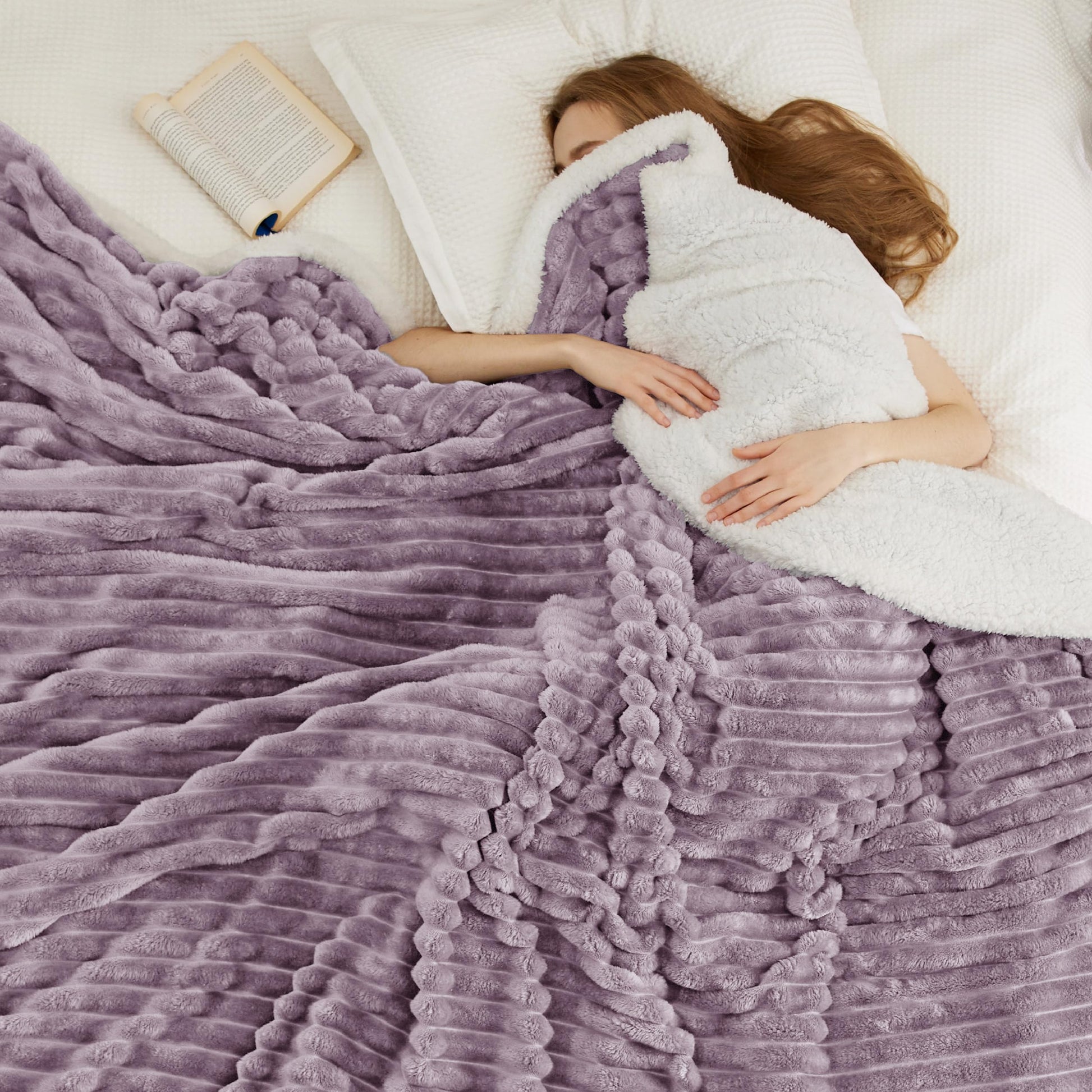Bedsure Sherpa Blanket King Size for Bed - Super Soft Cozy Plush Fleece Thick Warm Blanket for Winter, Purple, 108x90 Inches