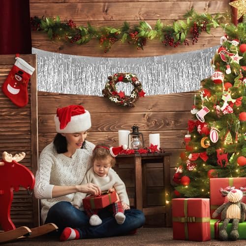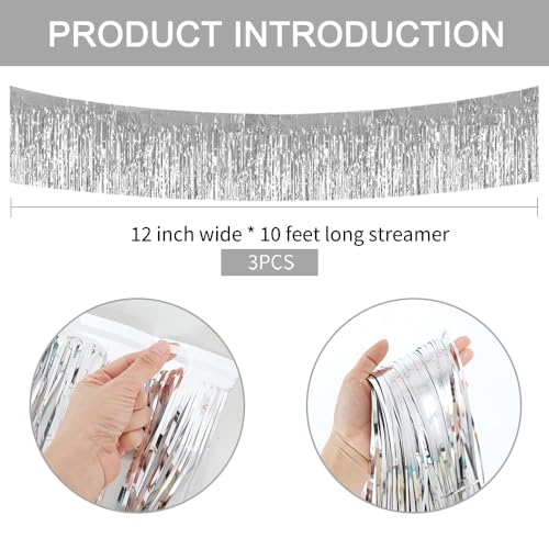 BEISHIDA 3 Packs 30 Feet Metallic Foil Fringe Garland Tinsel Streamers£¬Shiny Silver Wall Hanging Tinsel Fringe Banners for Wedding Birthday Party Decoration Halloween Christmas New Year