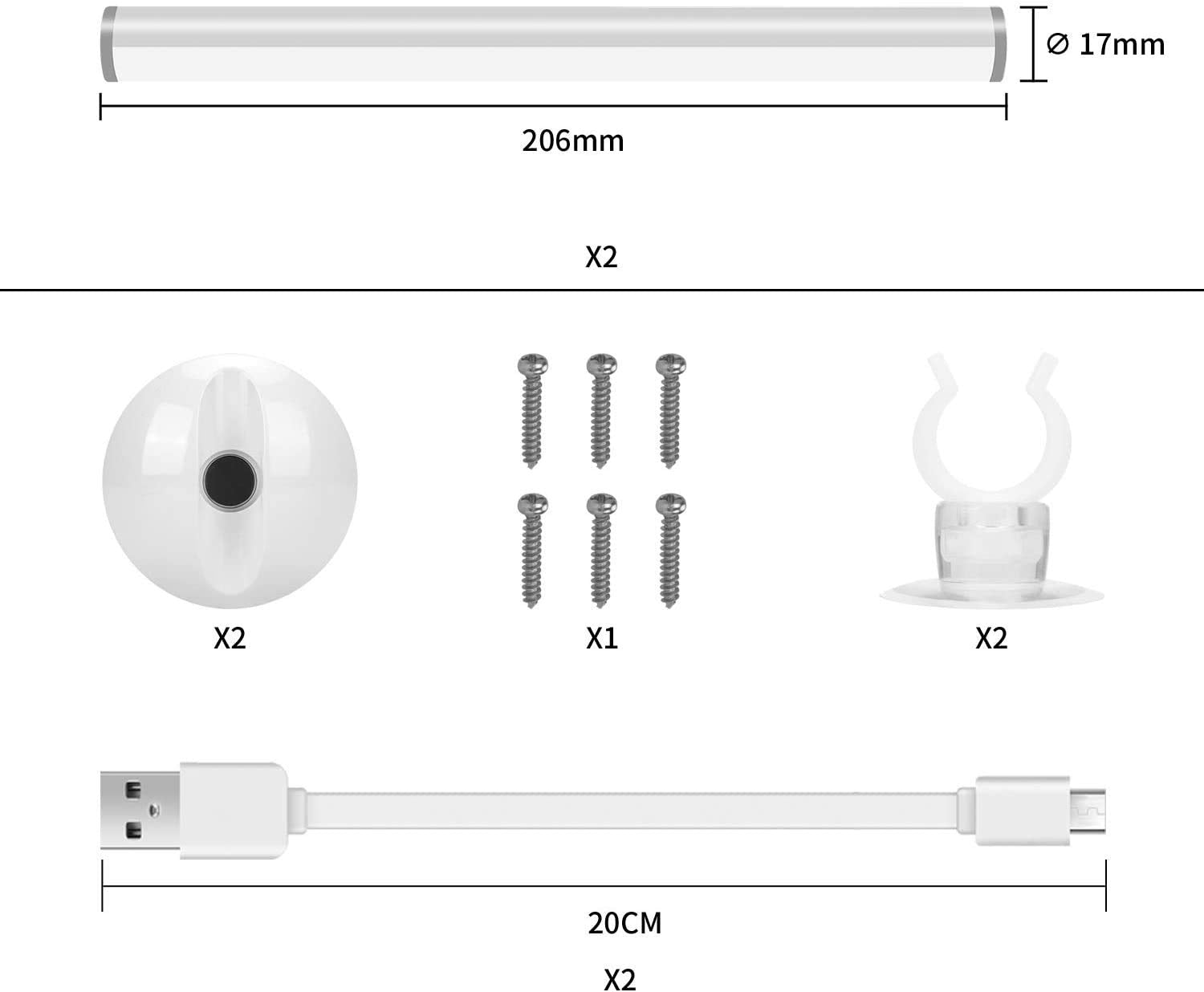- 3-Step Dimming Mirror Lights:Touch control to turn on/off and dimming, there are 3 brightness levels to choose from 10%-50%-100%, the maximum brightness is 200lm.Note: Please fully charge before the first use.