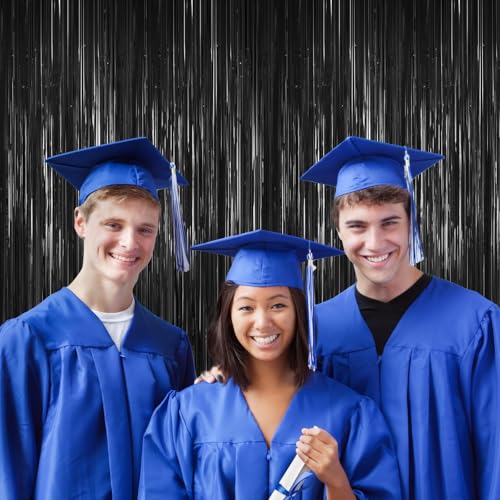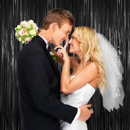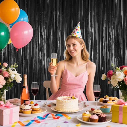 Black Foil Curtain Backdrop,2Pack Black Metallic Tinsel Foil Fringe Curtains Photo Booth Props for Birthday Wedding Engagement Baby Shower Bachelorette Christmas Halloween Disco Party Door Decorations