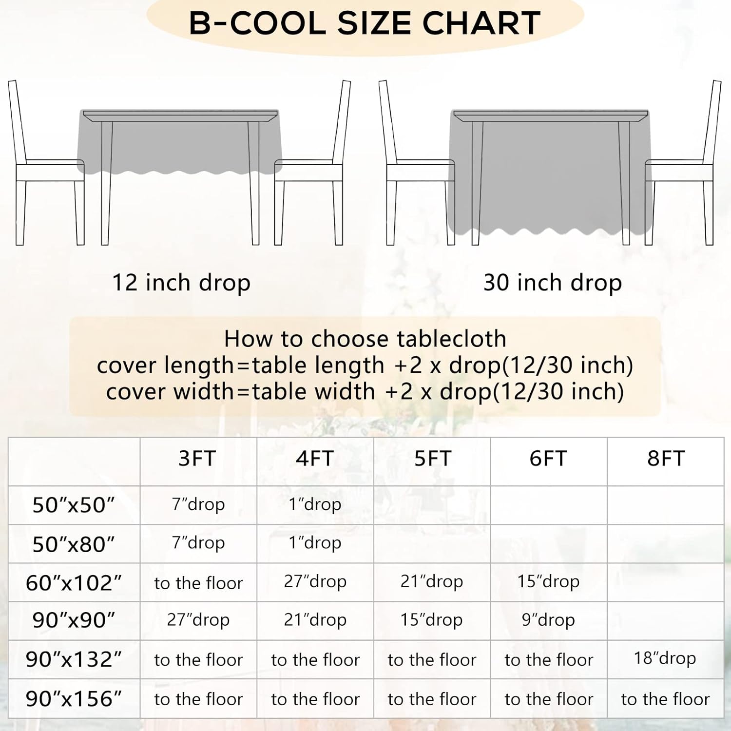 AVAILABLE COLORS AND SIZES: Please measure your table size before purchasing and calculate the proper size for a square or rectangular table
