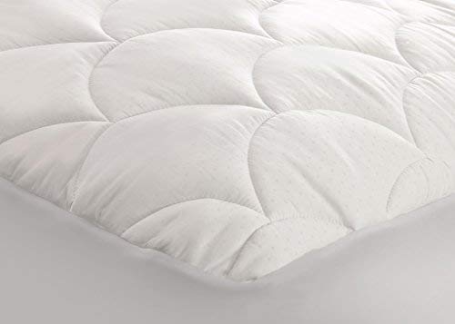 - 【SUPERIOR MATERIAL】The 100% microfiber mattress pad gives you a soft and smooth feel, 350 Thread Count cotton cover with damask dot quilt design adds feel of luxury to your bed. This mattress protector is filled with 12oz of premium polyester in every square yard to provide support to your body. Breathable and soft, it provides a safe and comfortable sleeping environment
