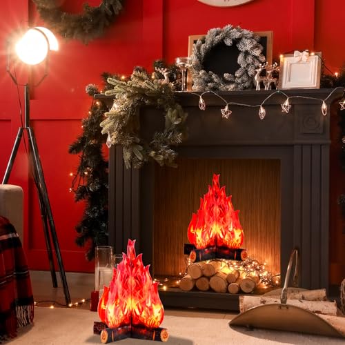 Boao 2 Set Fake Fire Fake Flame Camping Decoration 3D Cardboard Campfire Centerpiece Artificial Flames Campfire Party Decoration for Camp Bachelorette Christmas Party(12 x 10 Inch,Red Orange)