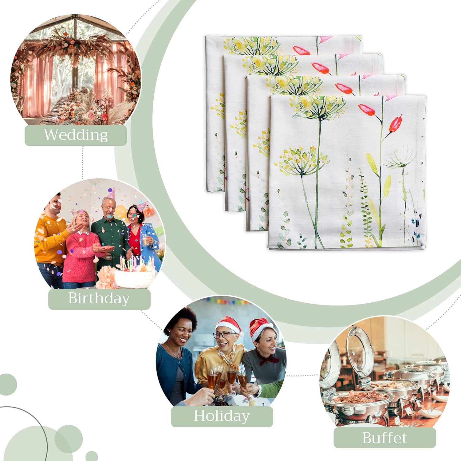 Botanical Fresh Cloth Napkins Set of 4 - 100% Cotton, Reusable & Washable, 20"x20" for Dinner, Parties & Weddings